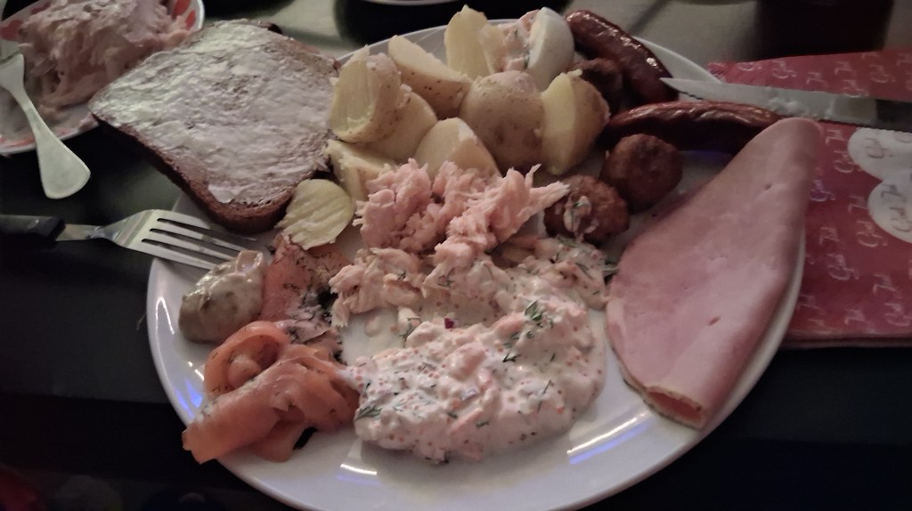 In Sweden, you celebrate Christmas on the 24th. So, that day, we had traditional Swedish food, so called “julbord”. Aaron liked it ❤